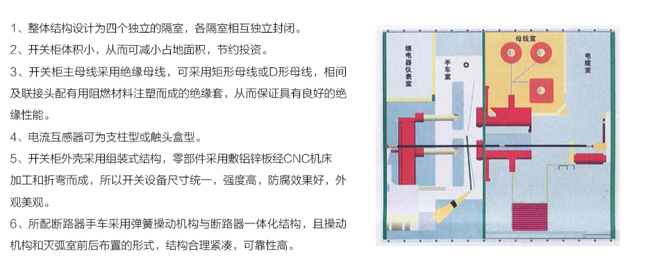 7、手車、斷路器、接地開關和后柜門之間設有防止誤操作的機械聯鎖裝置,“五防”功能齊全,安全可靠。
