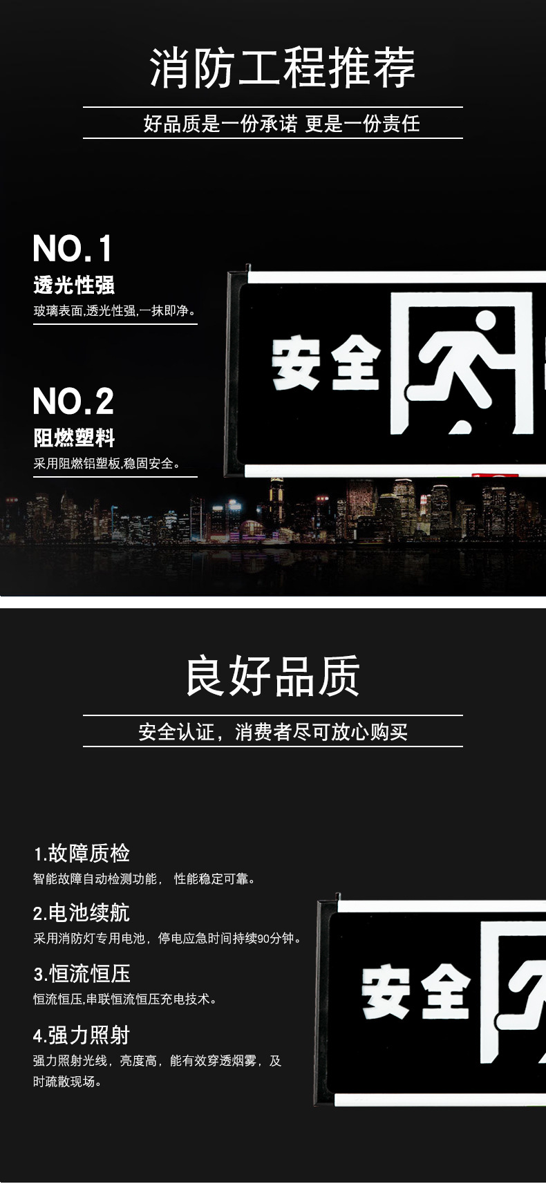 安全出口燈箱(左右),消防應(yīng)急燈標(biāo)志, 燈箱式安全出口指示牌功能特點(diǎn):
